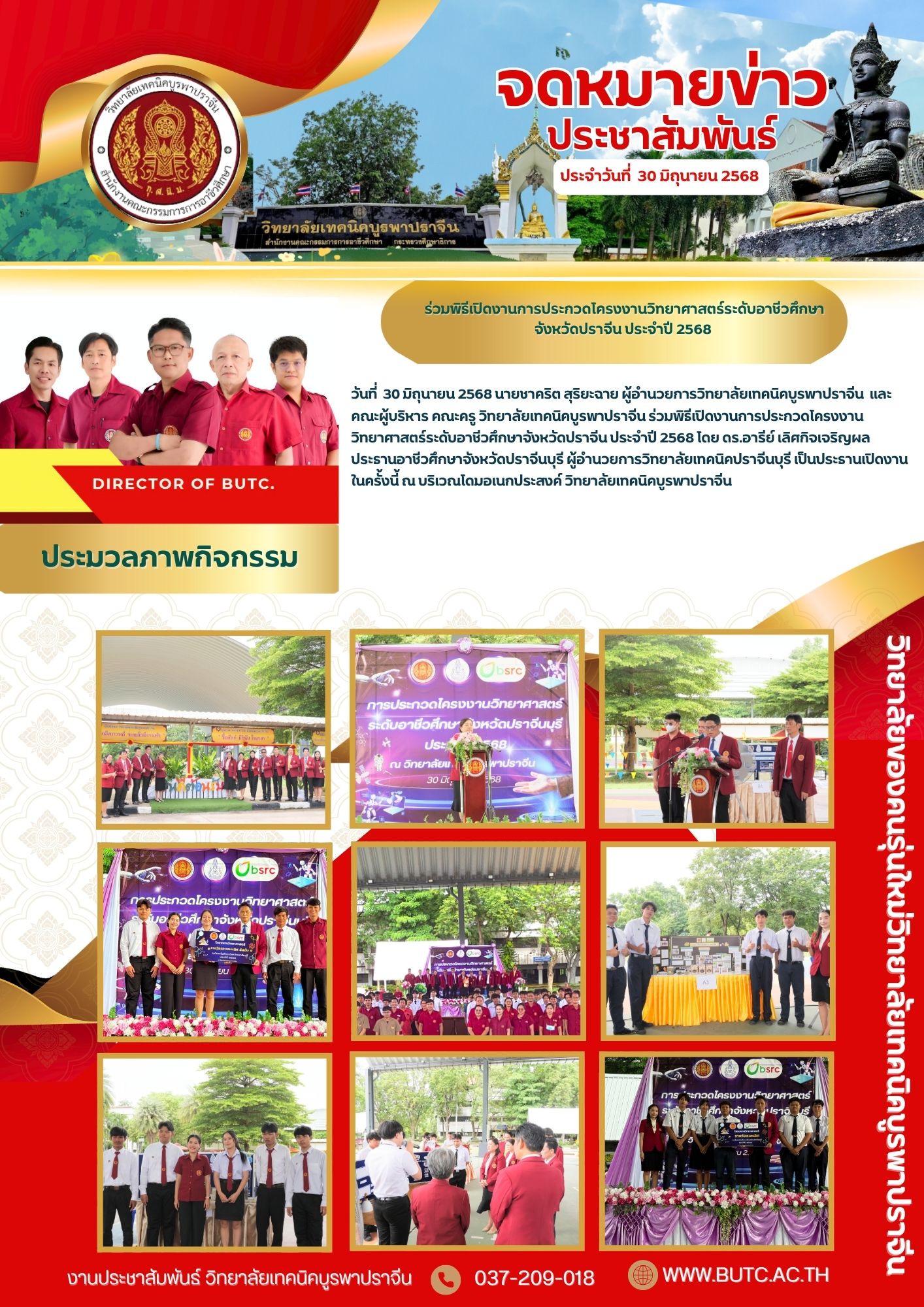 ร่วมพิธีเปิดงานการประกวดโครงงานวิทยาศาสตร์ระดับอาชีวศึกษา จังหวัดปราจีน ประจำปี 2568